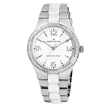 AK Anne Klein Women's 109119WTSV Swarovski Crystal Accented Silver-Tone Ceramic Dress Watch