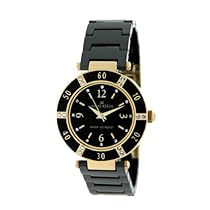AK Anne Klein Women's 109416BKBK Swarovski Crystal Accented Gold-Tone Black Ceramic Watch